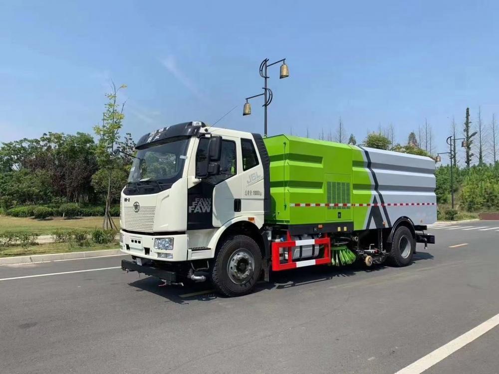 洗掃潔凈度高,該車型齊全的功能解決不同路面環境的作業,一次作業洗掃效率達98%以上,前沖功能、洗掃功能、路沿清洗功能、后噴霧功能、低壓沖洗功能以及采用的吸盤+左右側噴桿結構,路面、溝縫、彎道處、路沿上等處的灰塵、垃圾均能處理干凈,確保環境干凈、整潔。