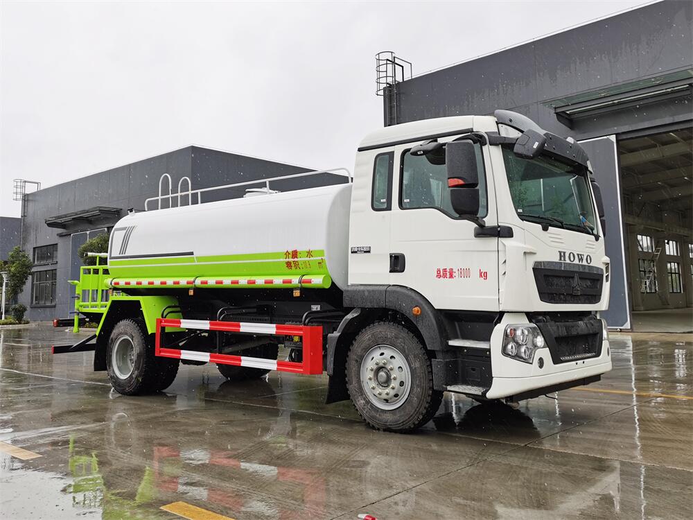 灑水車前裝有鴨形噴嘴或圓頭沖嘴,后面裝有圓柱開灑水噴嘴或蓮蓬頭噴嘴,后部有一工作平臺,裝配有水炮。后部還可裝8個噴嘴(選裝)。